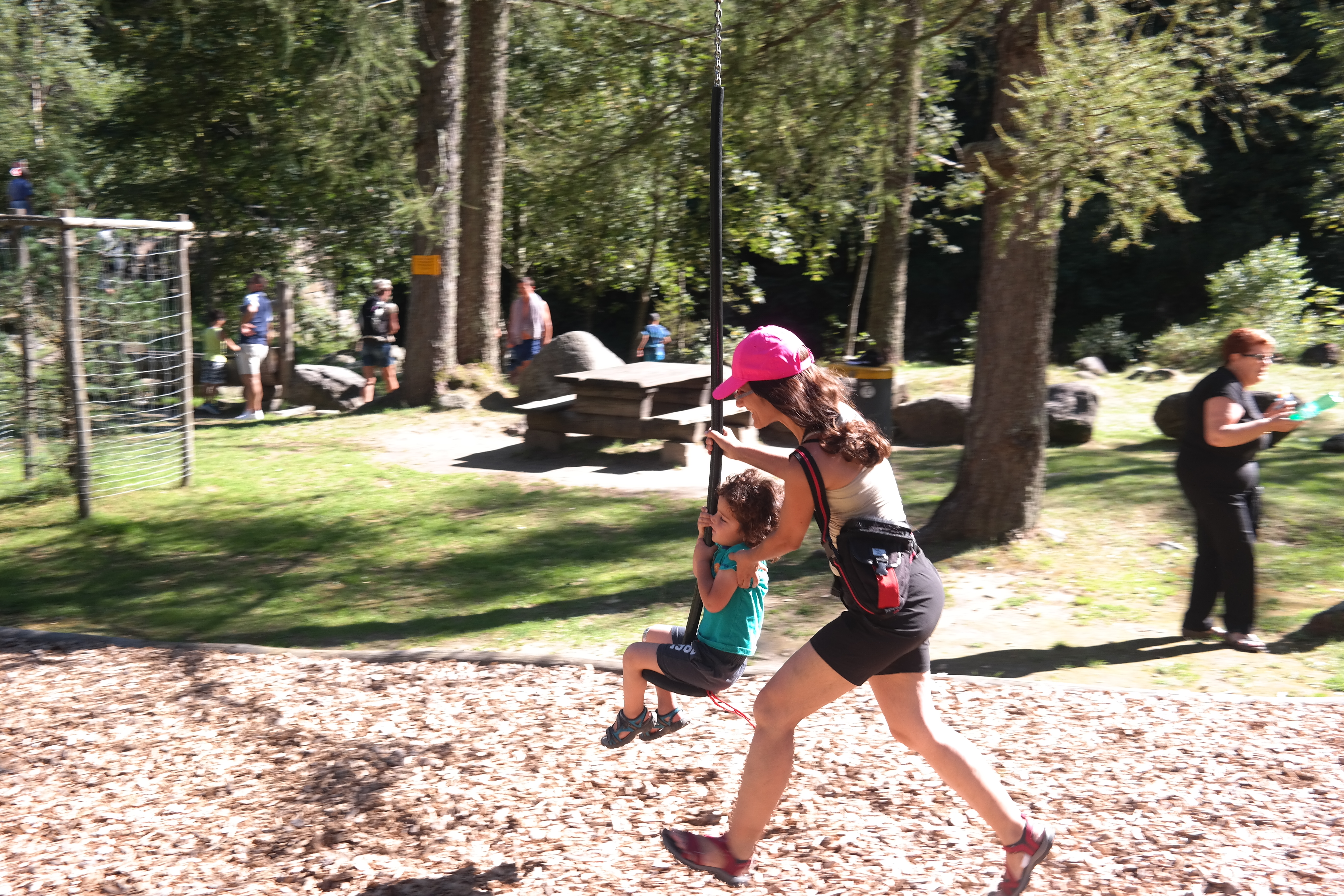 התחלנו את היום בסכר הענק שם גם קנינו כרטיס חנייה יומי ב-10 פרנק שישרת אותנו בכל החניות (אני זוכר תלונות על כך שכל החניות בשוויץ בתשלום, ומצד שני כדאי לזכור שכל הטבע בחינם… בארצות הברית כבר היו הופכים את העמק ל State Park, בישראל לגן לאומי כאשר המסלול למפל מן הסתם היה בעלות נוספת… שוב נחזור – שוויץ מאד יקרה באטרקציות התיירותיות ובמסעדות (כפול מאיטליה), השירותים למקומיים כמו הטבע, החופים, הסופרים ואפילו כבישי האגרה – בזול עד בחינם)