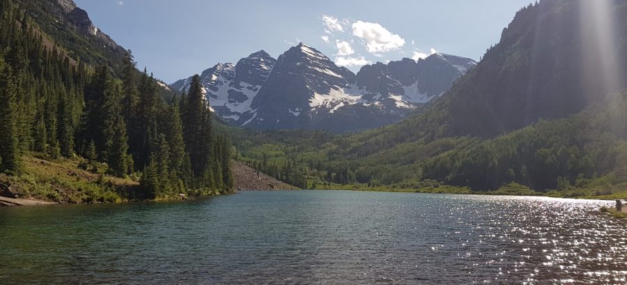 משם המשכנו אל המנה העיקרית שלנו להיום Maroon Bells הסמוכה לאספן ויותר חשוב ל- Snowmass Village שם נישן הלילה. בכוונה כיוונו ההגעה לאתר לאזור השעה 17:00 כדי שיתאפשר לנו להיכנס עם הרכב (מוקדם יותר הכרחי לקחת שאטל שיעלה כ-40$ למשפחה ובעיקר גם מסרבל). הגענו למקום באזור 16:40 ומיד נתנו לנו להיכנס (חינם עם ה National Parks Pass), כאשר ניצלנו את השקיעה המאוחרת ואת העובדה שמקום הלינה קרוב לבילוי של כשעתיים ויותר סביב האגם