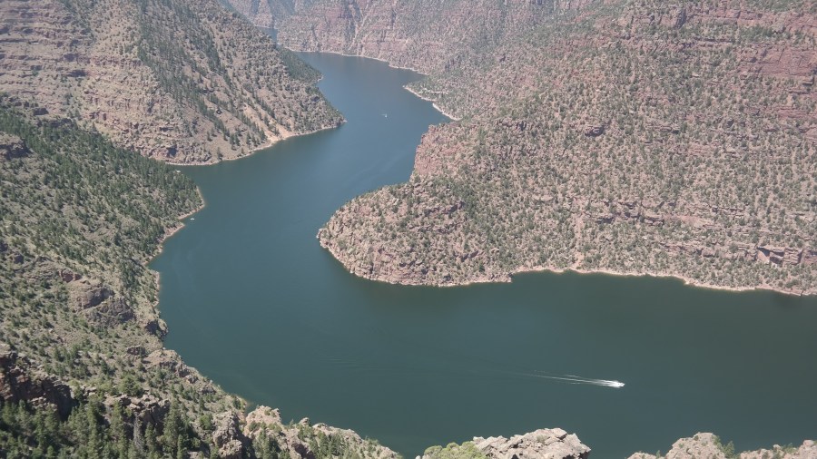 ממשיכים שעה צפונה מורנל, אך עדיין ביוטה, מגיעים ל Flaming Gorge National Recreation Area, תחילה לתצפית על סכר