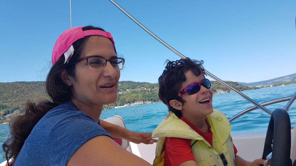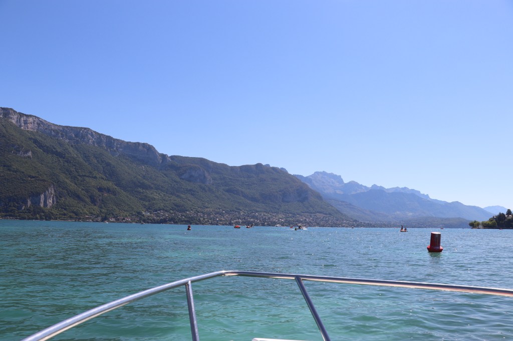 שעתיים מושלמות, שלווה מוחלטת, נוף מהמם, מזג אוויר אידיאלי – שטים כך עד אזור Talloires, עוצרים קלות לטבול רגליים באגם (מעדיפים שהילדים לא יכנסו לאגם אז משתמשים בתירוץ שאין בגדי ים – במקרים אחרים זה ממש לא הפריע) ואז מתחילים לחזור לכיוון אנסי – שעתיים מושלמות!