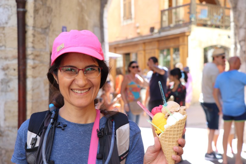 לאחר כשעתיים מחליטים להמשיך הלאה, אבל קודם עוצרים בגלידה Glacier des Alpes ומנצלים את העובדה שב 11:00 בבוקר עדיין אין בה תור – קונים גלידה משפחתית מרובת כדורים ומתענגים על הגלידה במזג אוויר נפלא – יאמי יאמי, ועדיין אין הסבר לתור המטורלל כל ערב כאשר מסביב יש כל כך הרבה גלידריות מעולות