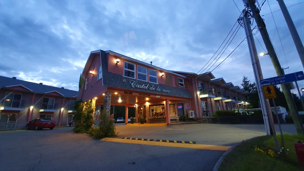 נמצאים שם עוד כשעה וכשמתחיל קצת להחשיך, עוזבים את טדוסק ועושים דרכנו למלון שיהיה ההפתעה האחרונה להיום – La Chouette Virée הנמצא בעיירה Grandes-Bergeronnes (וכך מקדם אותנו למעבורת מחר) . אז מה ההפתעה – מדובר בבית הארחה פרטי – הנמצא אמנם צמוד לכביש אך ממש לבדו – לנו יש סווטה גדולה, כאשר יש סלון ומטבח משותפים (וארוחת בוקר ביתית מחר). הבעלים כה נחמד, מזמין אותי לבירה ולהליכה בשטח עד לנהר בו הוא נוהג לדוג ומספר על החיים באזור – איך התיירות מקבלת עוצמה בשנים האחרונות (טוען כי הביקוש לחדרים משלש את ההיצע השנה, שהיא שנה טובה מאד לתיירות וממלאת את התושבים אופטימיות), איך בקיץ הוא חי מבית ההארחה אך כשמגיע החורף הוא חוזר לחיים של פעם – על בסיס דייג וצייד בתוך מרחבי השלג האינסופי. ובזמן שאנחנו מדברים הילדים טובלים בבריכה הקטנה בחצר ונהנים להסתובב בחצר, והרבה יותר בחדר הגדול שלנו (הערת אזהרה – המקלחות משותפות).