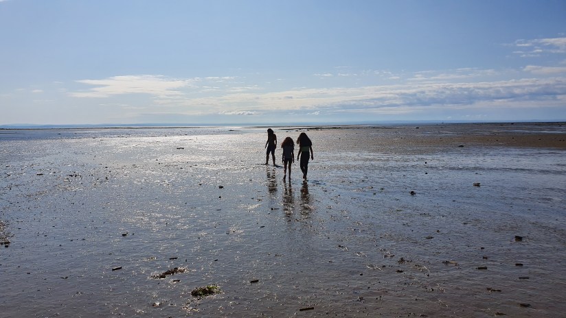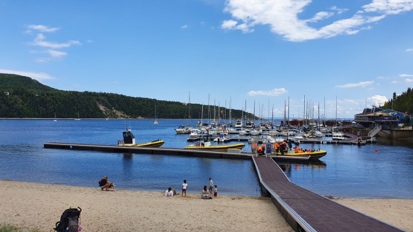קמים לבוקר קריר נוסף, השמיים בינתיים כחולים, ולאחר ארוחת בוקר קלילה מתחילים בנסיעה היומית. מתרחקים אולי קילומטר מהמלון, עדיין בתחומי העיירה לה מלביי – ומראה הנהר הנשקף לעינינו (והאנשים שנדמה שהולכים עליו) פשוט מכריח אותנו לעצור. שם הנקודה הוא Parc du Quai Casgrain והמראה הכה מיוחד הוא סוג של שפל בנהר שחושף עשרות מטרים של אדמה ספוגית שחלקה יבשה וחלקה עם מים בגובה סנטימטרים ספורים – אז עוברים מנעלים לסנדלים ומתחילים לצעוד (מה שמרגיש קצת כמו ריחוף) על שולי הנהר – המראות פשוט מדהימים ביופיים – תראו לבד: