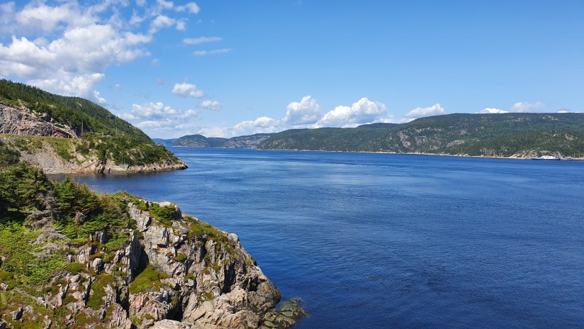 השעה כבר שעת צהריים והגיע הזמן לחצות במעבורת החינמית את הנהר אל העיירה טדוסק – ההפחדות על התור הארוך למעבורת מתגלות כהפחדות שווא (למעשה היינו האוטו הראשון שלא עלה למעבורת הראשונה אז נאלצנו לחכות כמה דקות, ממש לא נורא), ואז לאחר חציית הנהר מגיעים לטדוסק חונים בחניון ציבורי ויורדים לחוף על פיורד דה סגוניי לשחק קצת במים – המראה של המפרץ מטסודק עצמה עוד מצליח להתעלות על זה מ- Baie Sainte-Catherine – ואם נחזור להתחלת הפוסט – כבר ברור לי (ועוד לא ראינו כלום) :