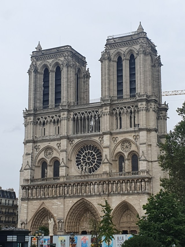בחנות עצמה משוטטים כחצי שעה (הילדים מחפשים ומצלמים כריכות ספרים שהם מכירים) ואז מסיימים את הטיול בצפייה בנוטרדאם שמהרחבה נראה יחסית בסדר (ומאחור רואים את הנזקים).